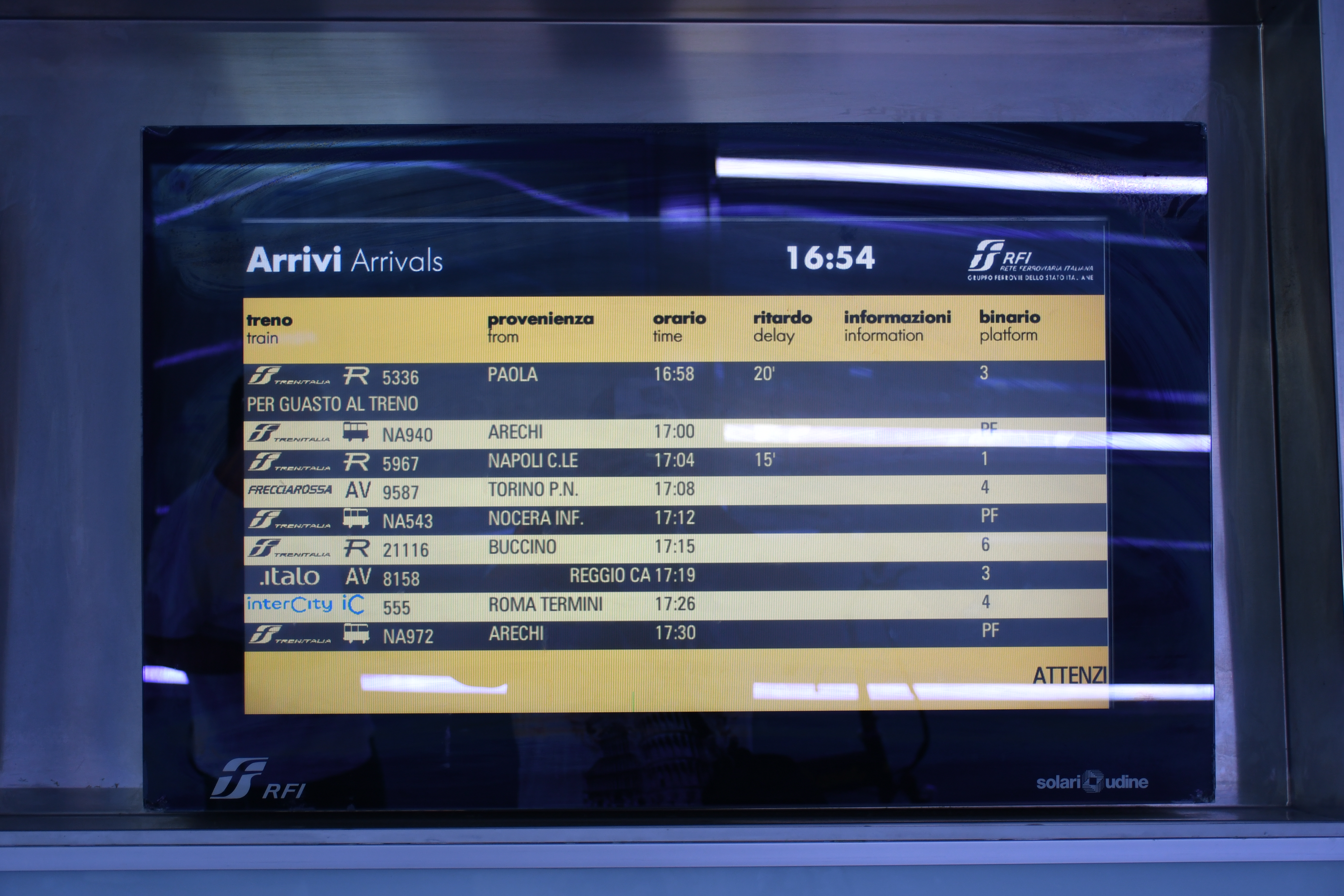 FS I-TI Sicilia Express Torino - Milano - Palermo iránytábla